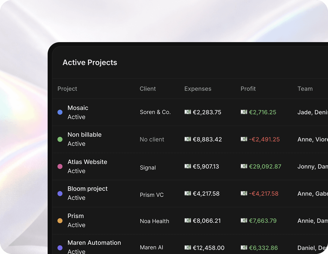 Margin tracking. Client comms. Team coordination. All in one place.